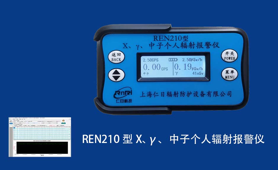 REN210型X、γ、中子個(gè)人輻射報(bào)警儀內(nèi)置SiPM和鋰玻璃晶體組成中子探測器儀器,采用反照率方式探測中子射線,同時(shí)也能探測X、γ射線。因此它可同事監(jiān)檢測X、γ、中子三種射線。能顯示工作場所的劑量當(dāng)量率和累積劑量,更換電池時(shí),日期及累積數(shù)據(jù)能永久保存。可選配RenRiPersonal個(gè)人劑量管理軟件,該軟件可存儲多個(gè)人的歷史數(shù)據(jù),能記錄日累積、月累積、年累積、輻照時(shí)長、計(jì)算平均劑量率、扣除或不扣除本底輻射,且以文字和圖譜的方式展現(xiàn)數(shù)據(jù)。廣泛應(yīng)用于環(huán)保、化工、水泥、煤礦、土木工程、石油、醫(yī)院、疾控、進(jìn)出口商檢、核電、加速器、機(jī)場、中子源庫和其他安檢、邊境控制海關(guān)檢測等領(lǐng)域中的工作人員進(jìn)行個(gè)人安全防護(hù)監(jiān)測及放射性提示。